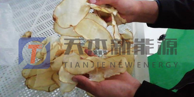 接下來是將土豆片分別放入托盤之中,放入土豆片烘干機進行烘干,土豆片烘干用多少溫度合適?前期先用低溫定色,設(shè)置溫度40℃左右,再慢慢升溫,后期烘干溫度控制在60℃一70℃, 要求土豆片含水量為10%以下。