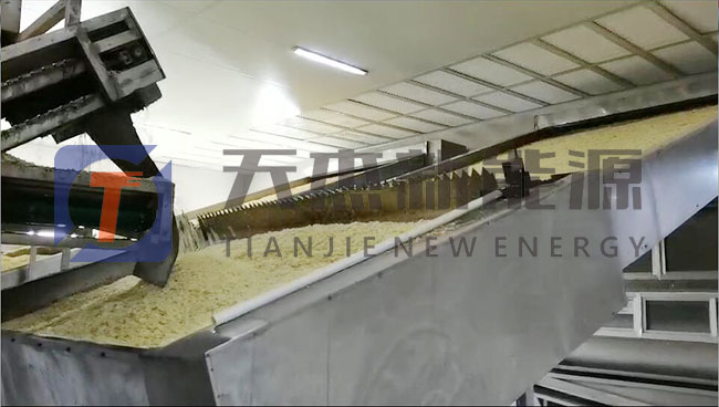八、切好的蒜片再次進(jìn)入汽泡清洗機(jī)進(jìn)行清洗,通過(guò)氣泡的揉搓,清洗掉蒜片表面的黏液和糖分。 清洗時(shí)間為3分鐘,水溫保持在10 ℃左右。