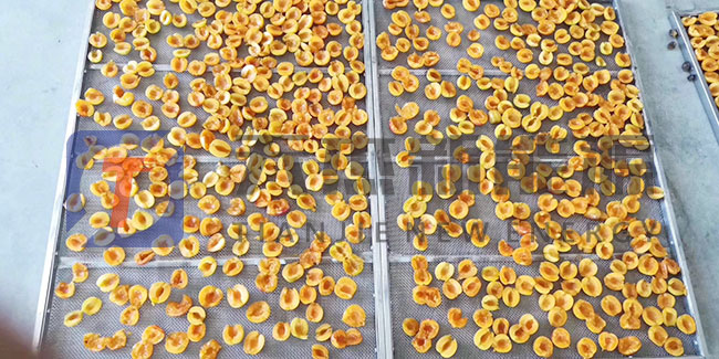 【黃杏干烘干機(jī)烘干工藝】:杏干烘干房烘干過程:溫度45度,濕度45%,升溫后恒溫共8小時(shí),此階段杏子出水比較大,如杏干烘干設(shè)備熱泵排濕能力不夠,需要開強(qiáng)排口進(jìn)行排濕.