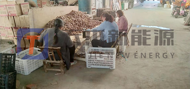 香菇烘干機(jī)怎么用:駐馬店香菇烘干機(jī)客戶使用的是電能香菇烘干機(jī),用戶正在選備篩選香菇成品。篩選分堆后的香菇成品料