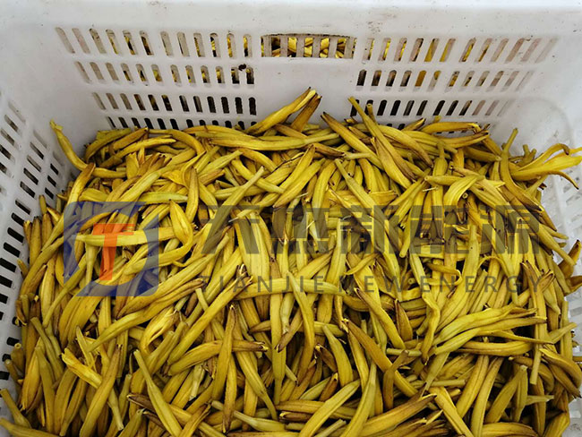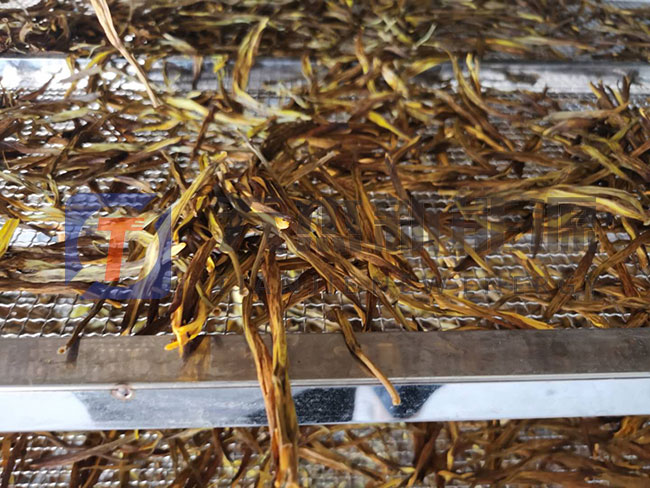 3、經(jīng)過2個小時的殺青冷卻后,黃花菜有點像煮熟后的那種感覺。這個時候溫度控制在45℃-50℃,運行時間3個小時。濕度控制在70% 左右。