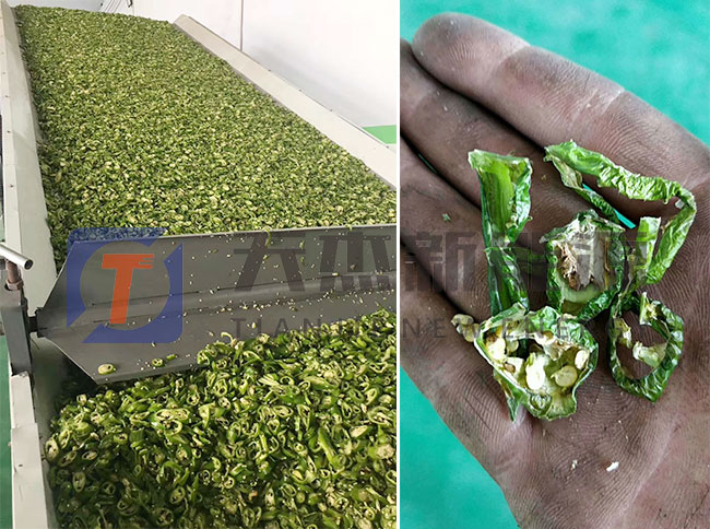 辣椒烘干機大體分為兩種:網(wǎng)帶式辣椒烘干機和箱式辣椒烘干機。箱式辣椒烘干機烘干使用的是托盤,辣椒重疊的厚度一般在20~30厘米為宜。網(wǎng)帶式辣椒烘干機只需有人送料,厚薄程度機器會自動撥動。